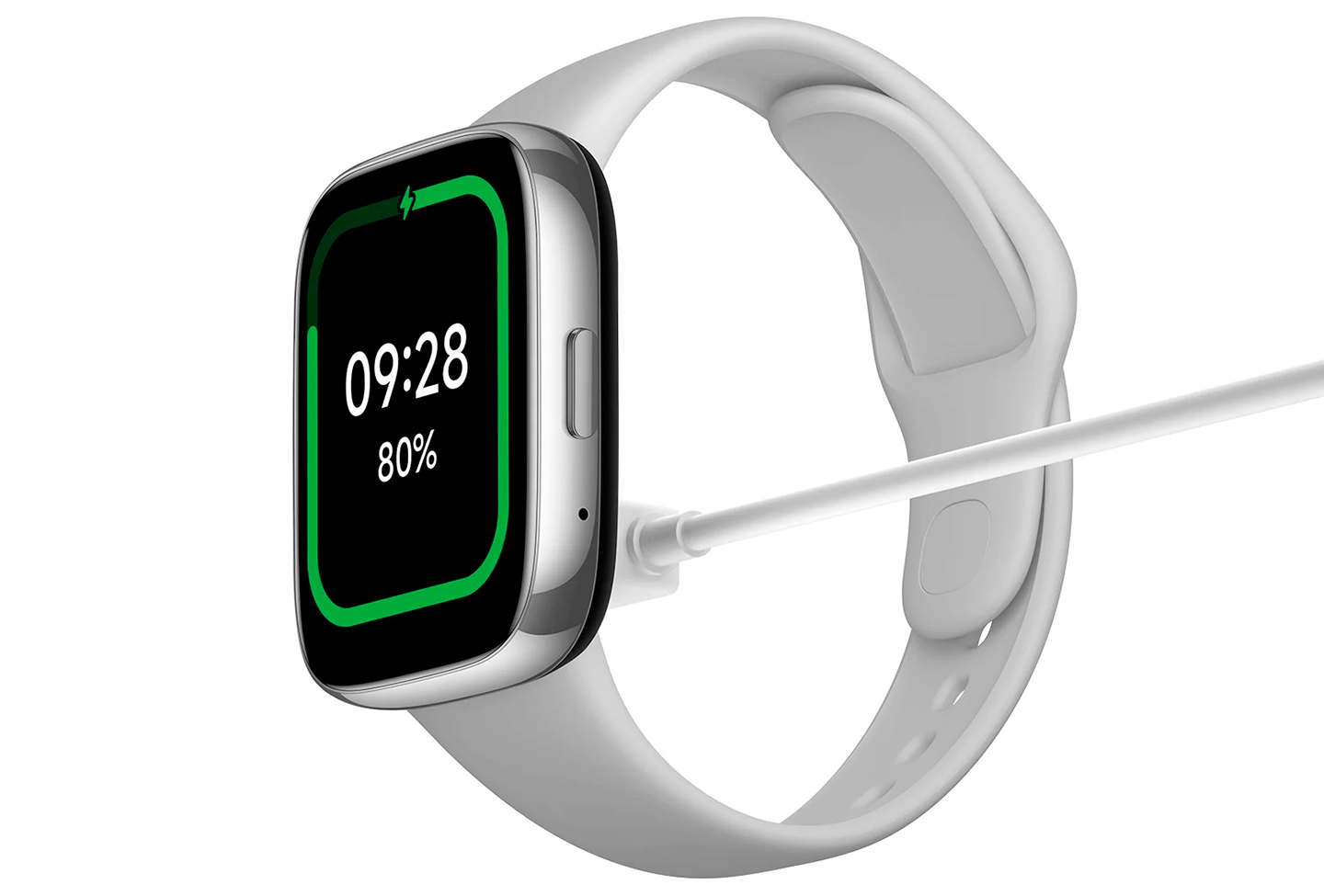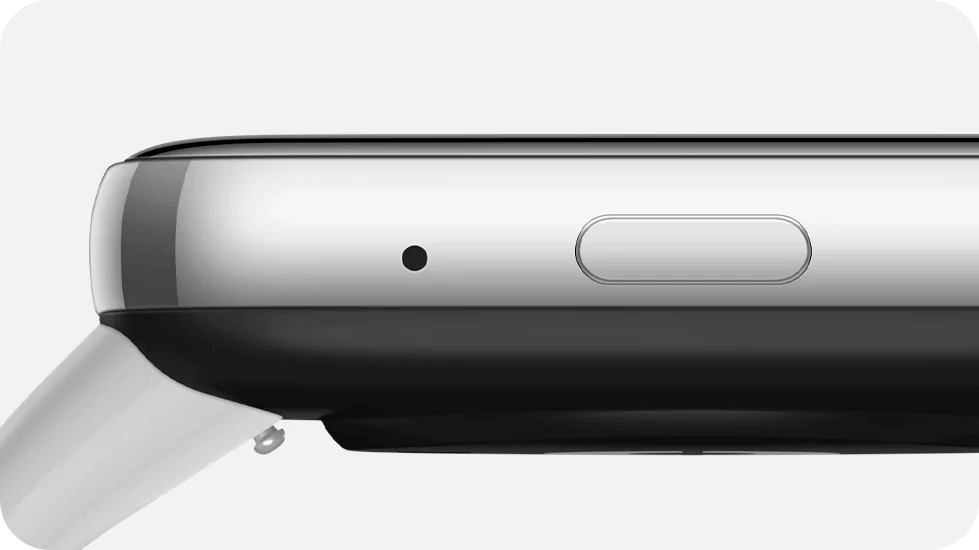O visual clássico retangular do smartwatch somado ao acabamento metálico em NCVM aprimora sua aparência refinada de duas cores, prata e cinza.
